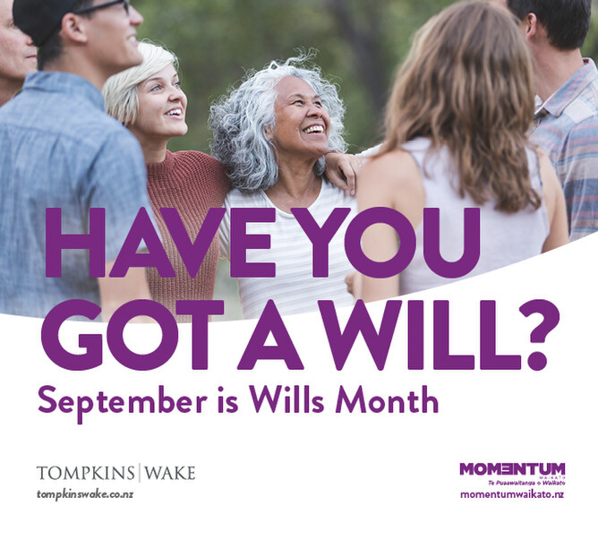 Tompkins Wake is offering a free no-obligation 30-minute Will discussion during the month of September. To arrange this, contact Scott Ratuki via scott.ratuki@tompkinswake.co.nz or 07 838 6002.